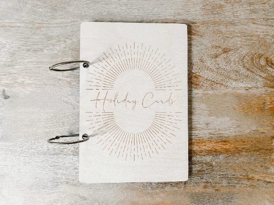 This Card Keeper is made with Baltic birch wood and is bound together with two silver 2 book binder rings.